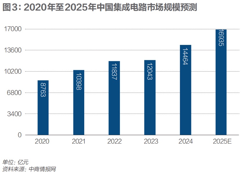 在此目标下,中国半导体产业实现快速发展。根据中国半导体行业协会的预测,2025年半导体产业规模有望接近2万亿元,产业链自主能力大幅提升,涌现华为、寒武纪、海光信息、新凯来等一批在半导体方面有重大突破的企业。