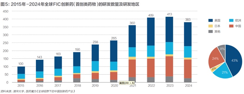过去的十年,中国在医疗健康可及性和效果均等化、医药技术创新、疫苗和短缺药品供应保障、医保支付等方面,成效斐然。如创新药上市数量由2015年的11款提升至2024年的92款,2024年有22款国产化药和17款国产生物药获批上市,国产创新药占比提升至42%。